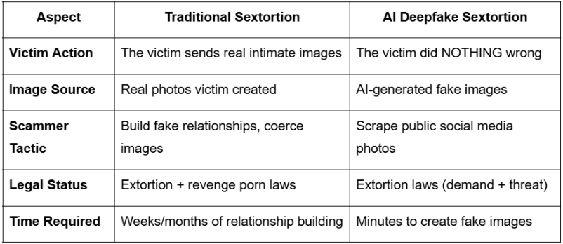 Traditional Sextortion vs. AI Deepfake Sextortion